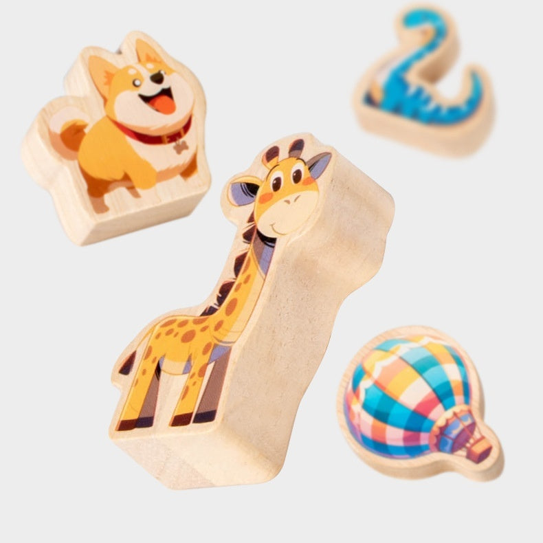 Chaque élément est en bois naturel, avec des bords arrondis et des formes faciles à manipuler. Votre bout'chou joue librement, sans danger, dans une activité calme et captivante.